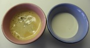 - Blanchir les 3 jaunes d'oeufs avec la moitier du sucre